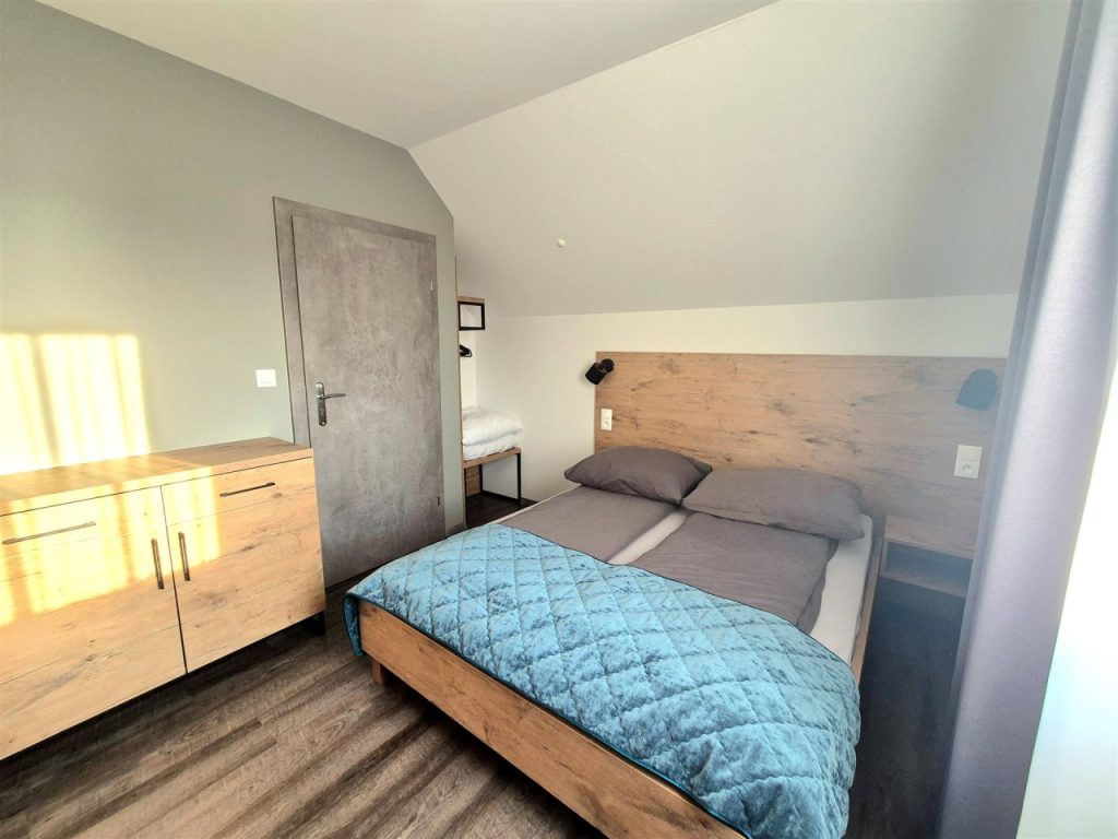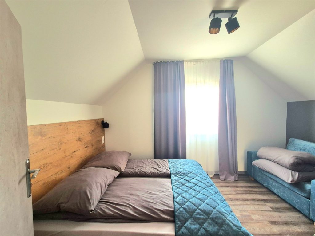 • Piętro: dwie komfortowe sypialnie, zapewniające prywatność i wygodę.